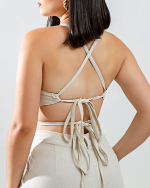Cropped em linho misto, este linho tem características únicas que proporciona conforto a veste, costas nuas dando um toque sexy, mas composto na frente, tamanho ideal sem mostrar muito a barriga.ótimo para composições com calças e shorts em linho.