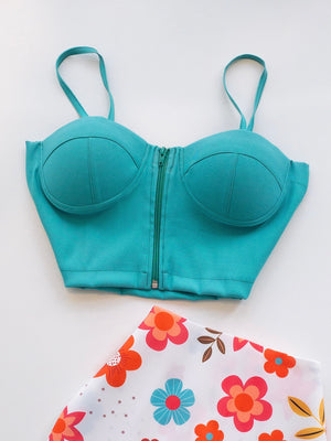 Cropped em bengaline com bojo, veste P e M. Com ziper na frente, tecido com bastante elasticidade, propocionando uma modelagem perfeita e o conforto ideal.