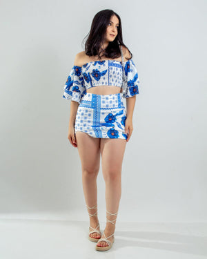 Short saia estampado com fenda única