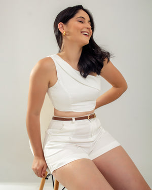 Cropped Beatrice em alfaiataria com laço removivel, e com amarração nas costas veste PP, P e M